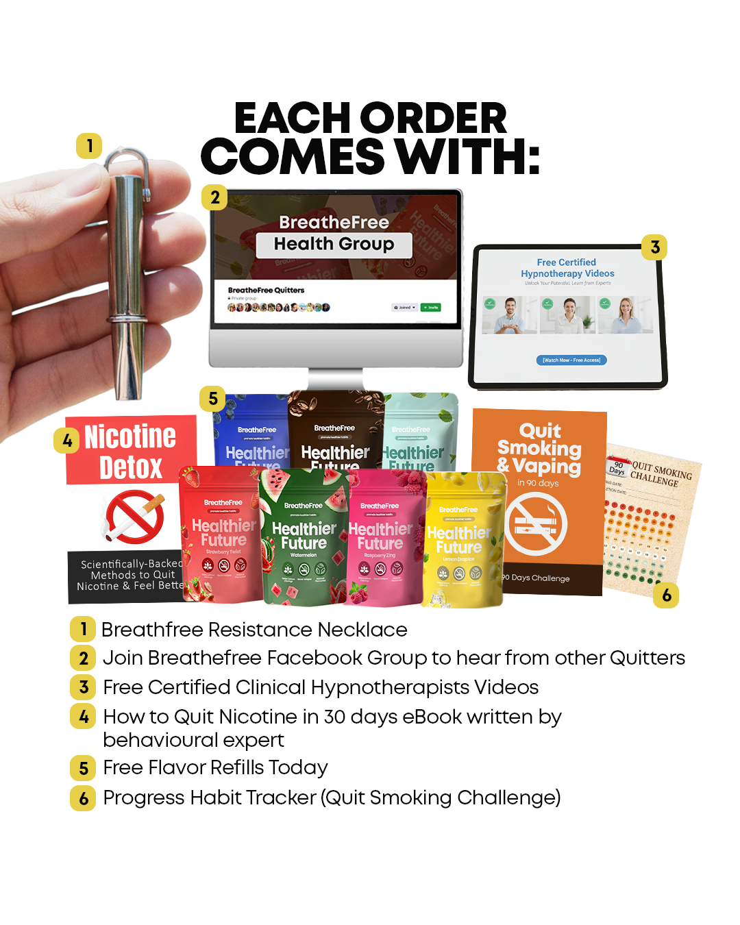 Step into 2026 feeling calmer, healthier, and finally nicotine-free. Every order comes with powerful support gifts - some sent straight to your inbox, others included in your package - plus access to our private Quitters Health Group where you’ll hear real stories from others on the same journey. We’re confident these tools will help you quit, which is why you’re covered by our 30-day money-back guarantee. Start your transformation this New Year.